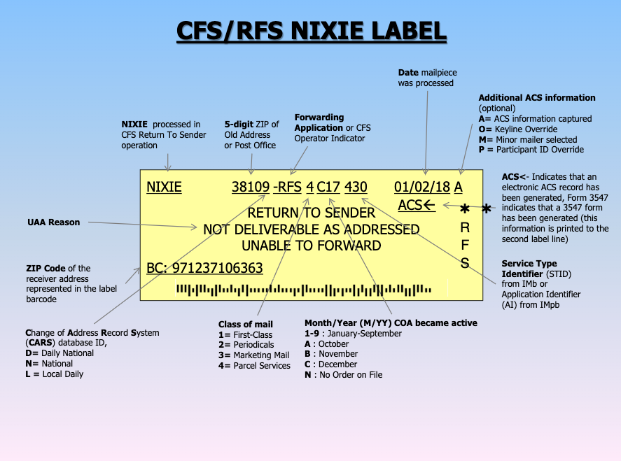 What's a NIXIE sticker? Distinctive yellow NIXIE stickers are applied to undeliverable mail by USPS in some situations. They are most often seen when mail is returned to sender. Screen_Shot_2023-01-10_at_4.14.15_PM.png 190 KB View Download Choose files or drag and drop files Tags: Was this article helpful? Yes No Carly Brown Posted Updated PostShare on Facebook Comments Please sign in to comment