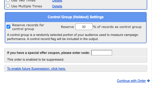 We are excited to introduce the Control Group (Holdout) feature, a new option available for all orders that helps you measure the effectiveness of your campaigns.